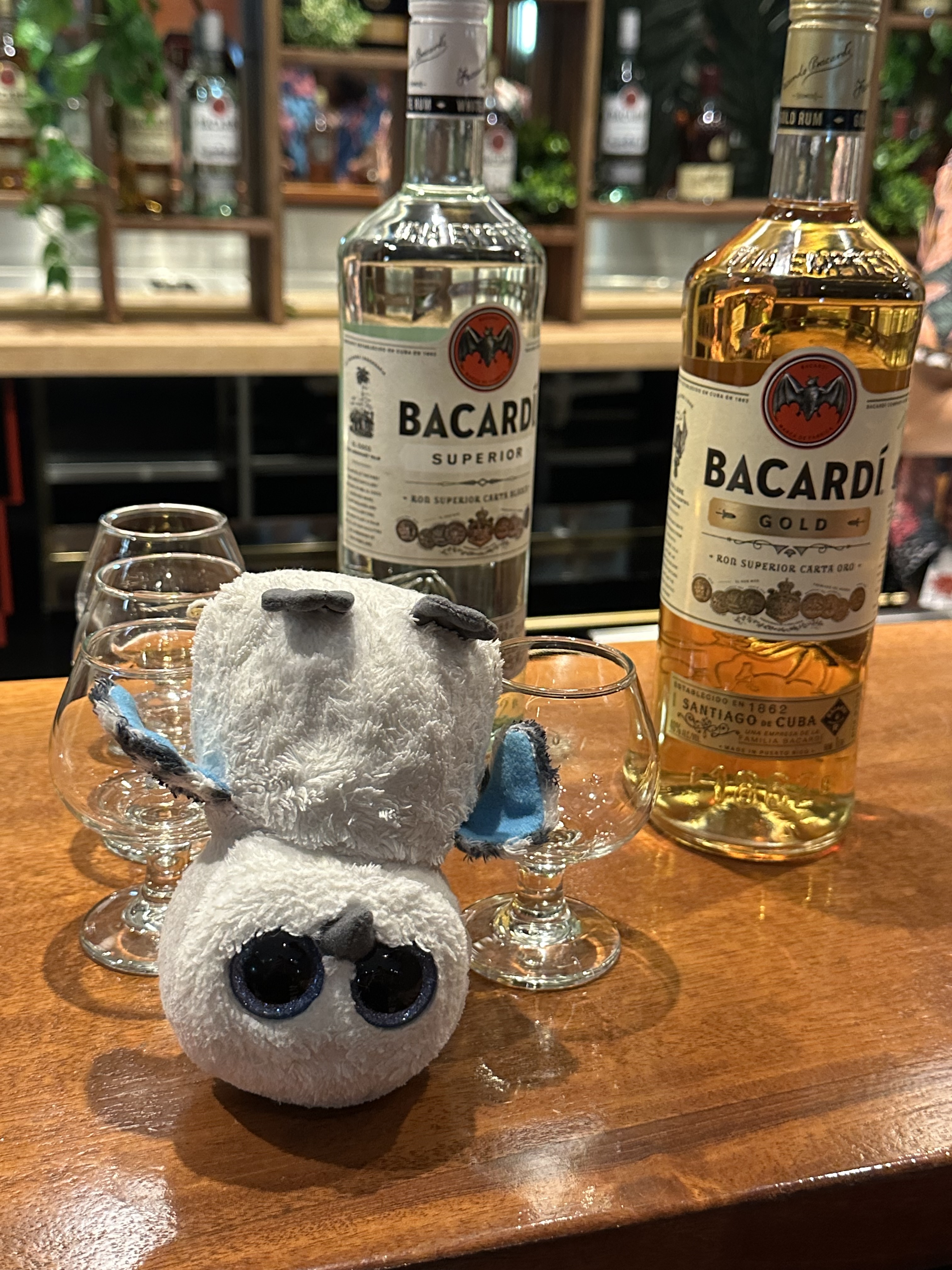 Hermes having a little bit too much rum at Casa Bacardi in Puerto Rico